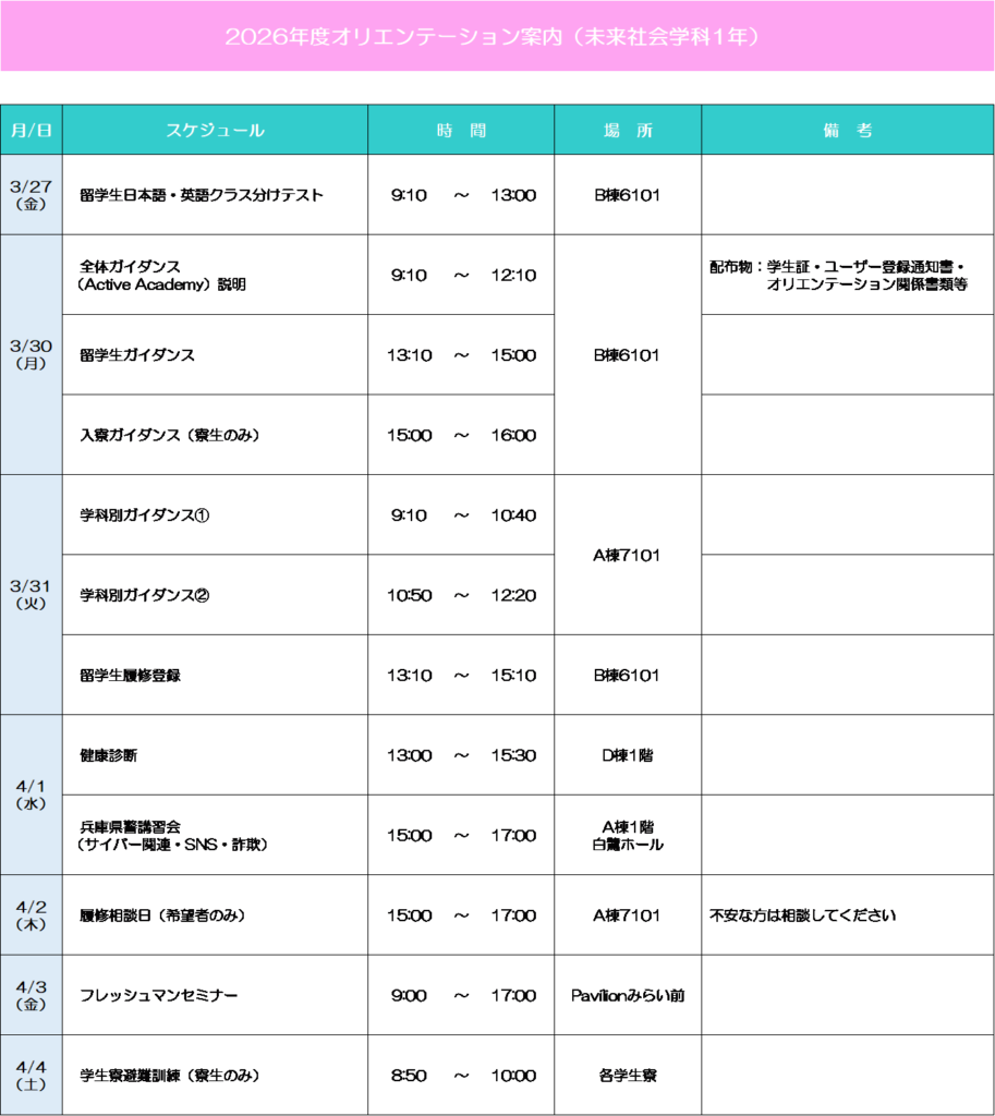 新入生の皆さまへ(姫路キャンパス)