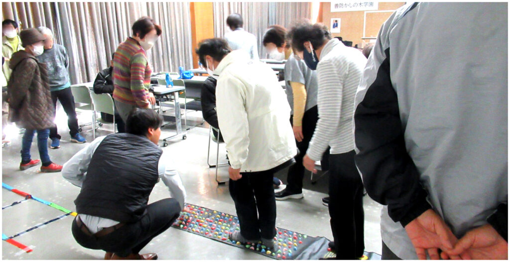 フレイル予防を目的足した脳トレや足裏のエクササイズの効果やメカニズムについて、講義と実技を交え、楽しそうに受講されている様子でした。