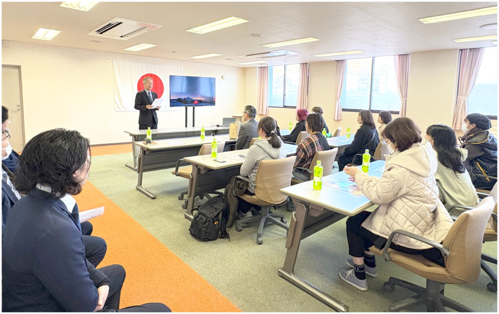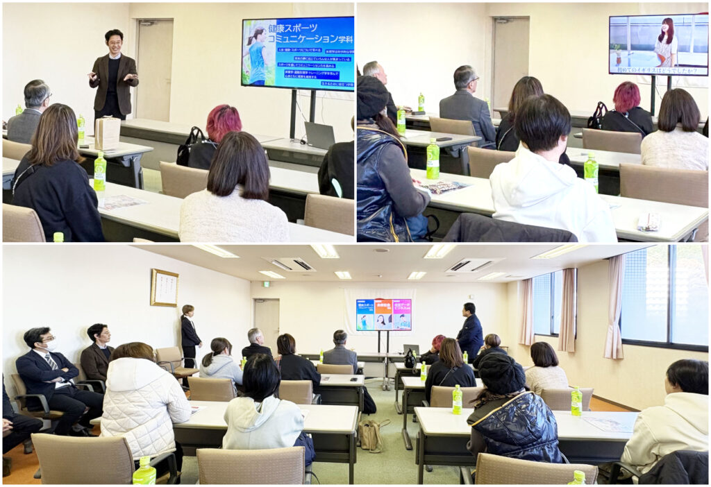 健康スポーツ学部長の和田教授、人間社会学部長の船橋教授から学科説明や、留学制度の紹介をしました。