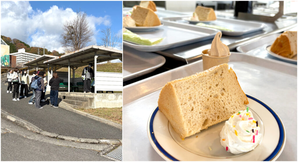 学生食堂でもち麦シフォン、もち麦ソフト、もち麦茶を楽しんでいただきました。