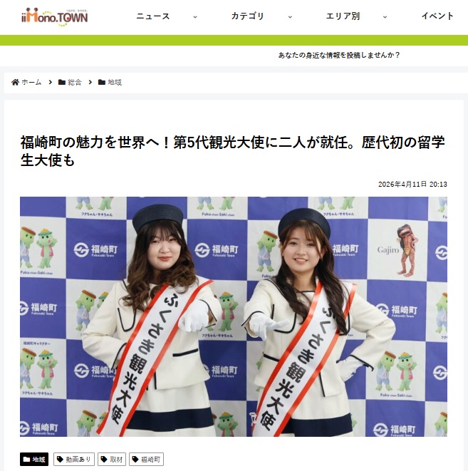 第5代ふくさき観光大使に、本学学生2名が就任しました。