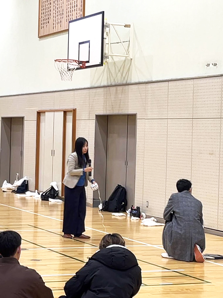 授業のまとめとして、正井先生から「避難所で自分は何ができるのか」を考えてみようと投げかけられました。生徒会長の生徒さんから、「避難所体験で実際に発災直後の状況を体験することができました。防災について今後も学んでいきたいです」という力強い御礼のことばをいただきました。災害が起きないことを願いつつ、いざという時には、今回の学びも生かして地域を支えていってくださいね!