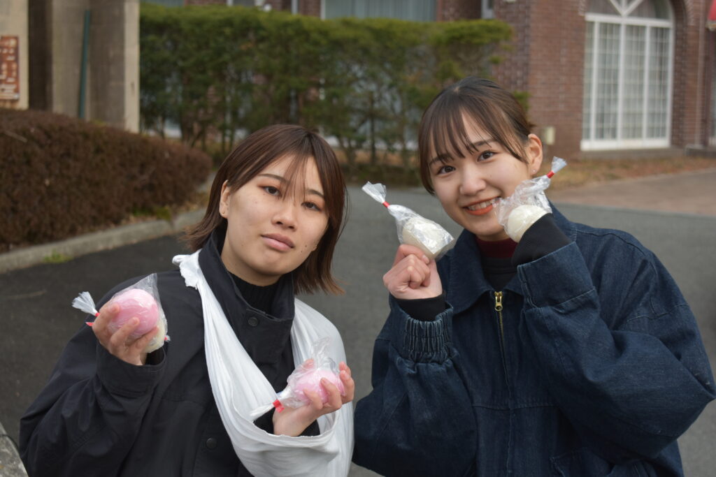 お昼休みに餅まきをしました。